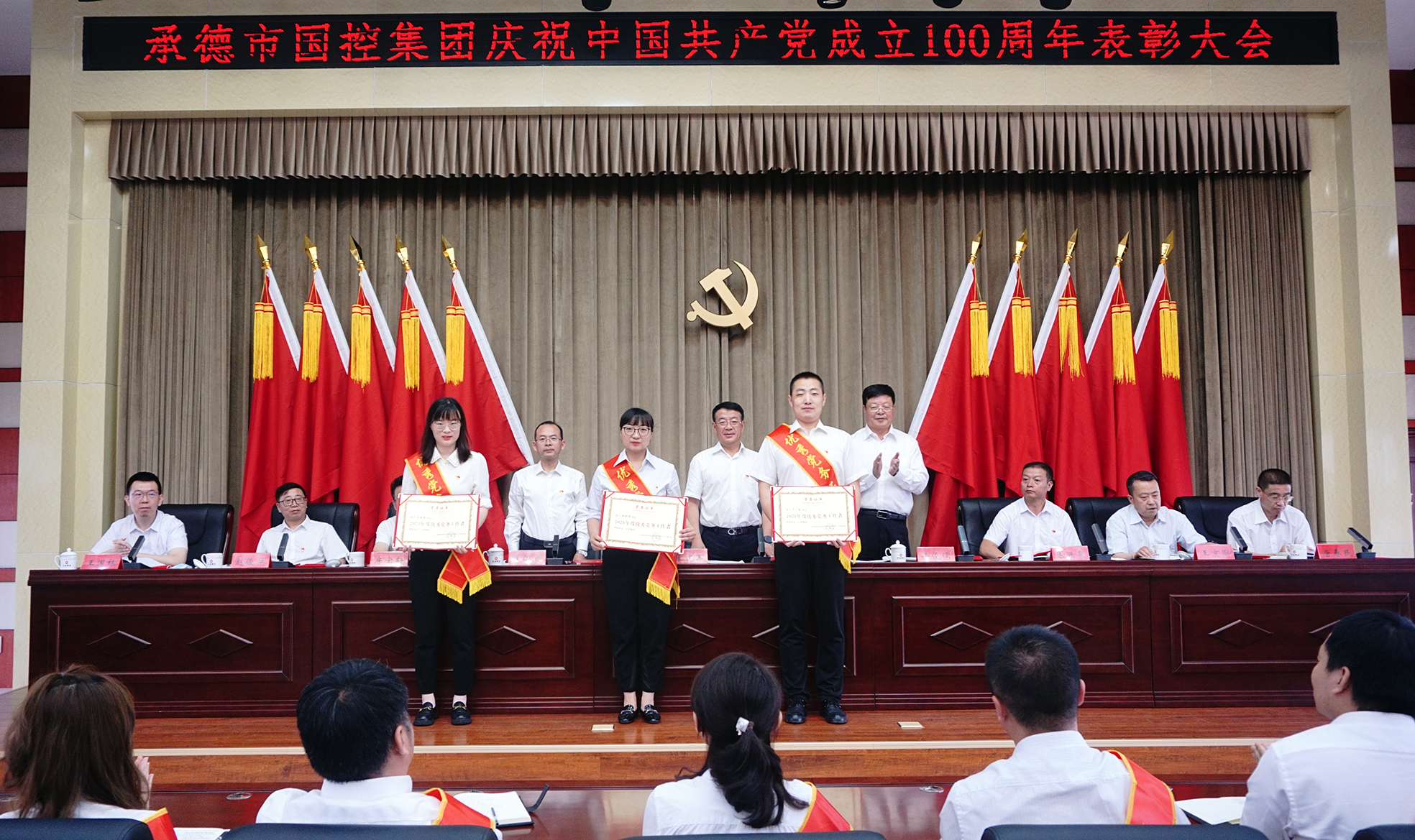 表彰大會(huì)氣氛隆重?zé)崃?,大?huì)在全場(chǎng)起立高唱國(guó)歌聲中開(kāi)幕。集團(tuán)公司黨委決定,授予許平凡等7名共產(chǎn)黨員“優(yōu)秀共產(chǎn)黨員”稱(chēng)號(hào),授予胡斌偉等3名黨務(wù)工作者“優(yōu)秀黨務(wù)工作者”稱(chēng)號(hào)?,F(xiàn)場(chǎng)向先進(jìn)個(gè)人頒發(fā)了證書(shū),并向參加“慶祝中國(guó)共產(chǎn)黨成立100周年書(shū)畫(huà)攝影大賽”獲獎(jiǎng)的人員頒發(fā)了榮譽(yù)證書(shū)。