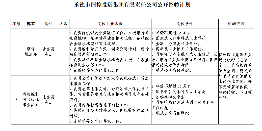 具體應(yīng)聘條件見《承德市國控投資集團(tuán)有限責(zé)任公司公開招聘計(jì)劃》。