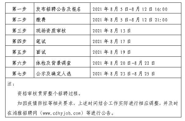 2021年8月5日至 2021年8月12日16:00 在鴻雅招聘網(wǎng)(http://www.cdhyjob.com/)、鴻雅微信公眾號、國控集團(tuán)官方網(wǎng)站等發(fā)布招聘公告。